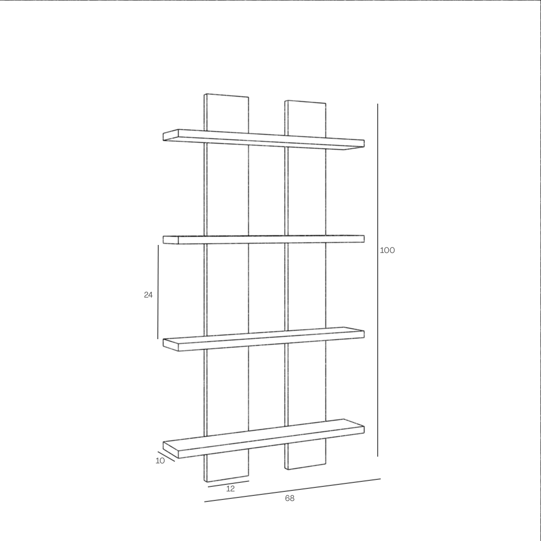 Espacement entre les 4 étagères : 24 cm